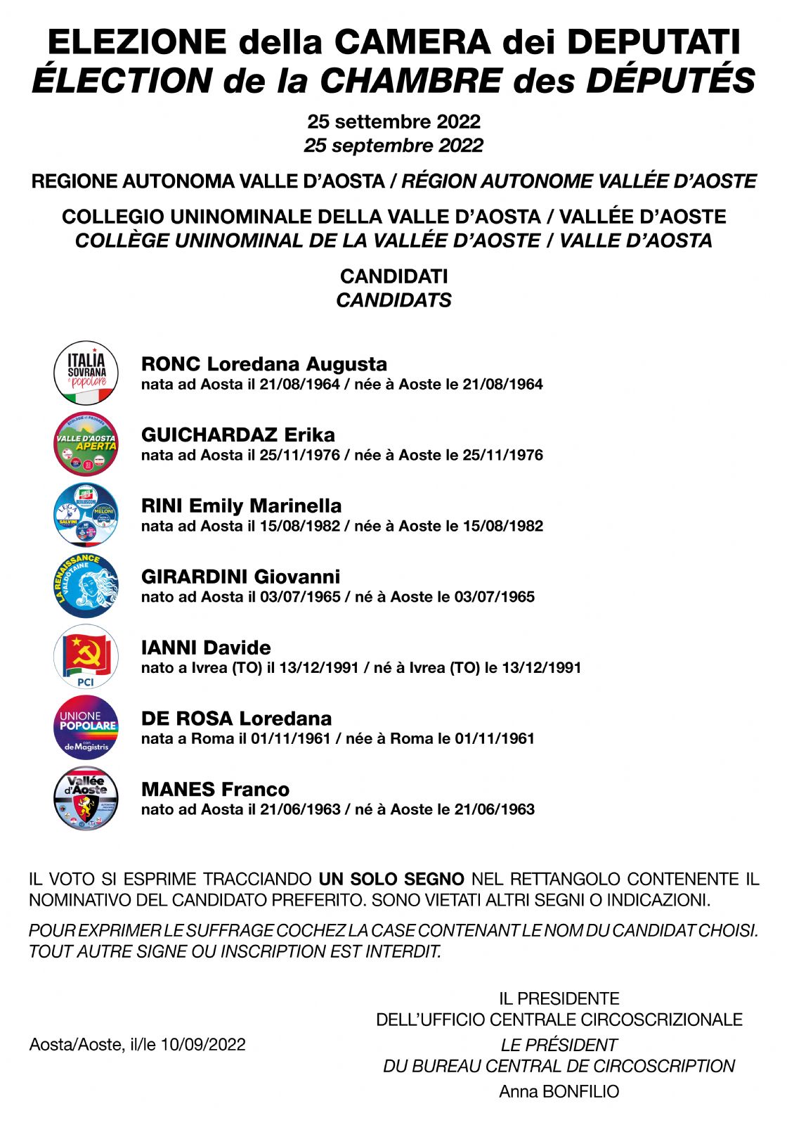 - Elezioni politiche - Manifesti dei candidati Camera dei Deputati[.pdf 354,95 Kb - 08/09/2022]