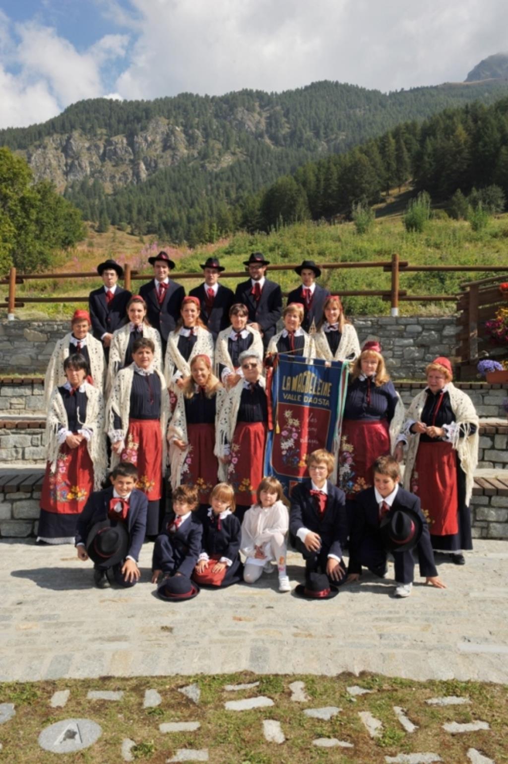 Il costume di La Magdeleine, nato nel 1983 per iniziativa del gruppo “Les Cinq Villages”, riprende i vestiti delle feste usati dai contadini appartenenti al casato di Cly (ramo della nobile famiglia feudale Challand). Sul grembiule sono raffigurati, intrecciati, i cinque fiori che simboleggiano i cinque villaggi di La Magdeleine: la genzianella per Messelod, la margherita per Clou, l’anemone per Brengon, la rosa di macchia per Vieu, la stella alpina per Artaz. Il costume è completato da uno scialle in lana bianca e dalla cuffia, sulla quale è ricamato solamente il fiore relativo al villaggio cui il costume si riferisce.