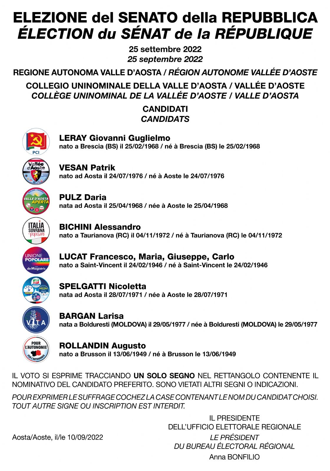 - Elezioni politiche - Manifesti dei candidati Senato della Repubblica[.pdf 305,48 Kb - 08/09/2022]