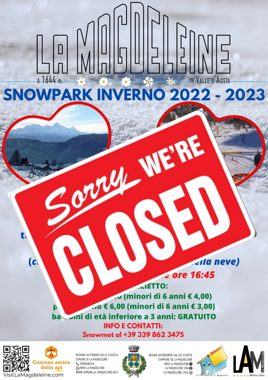 Chiusura Snow Park a La Magdeleine