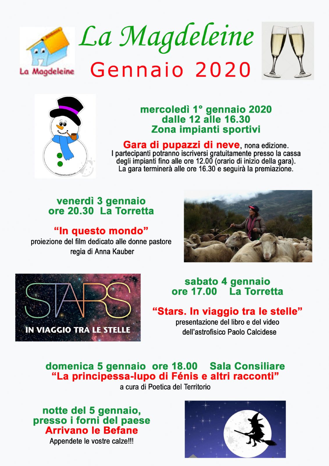 Vi aspettiamo numerosi per festeggiare il nuovo anno insieme a pupazzi di neve, donne pastore, stelle, principesse e befane!