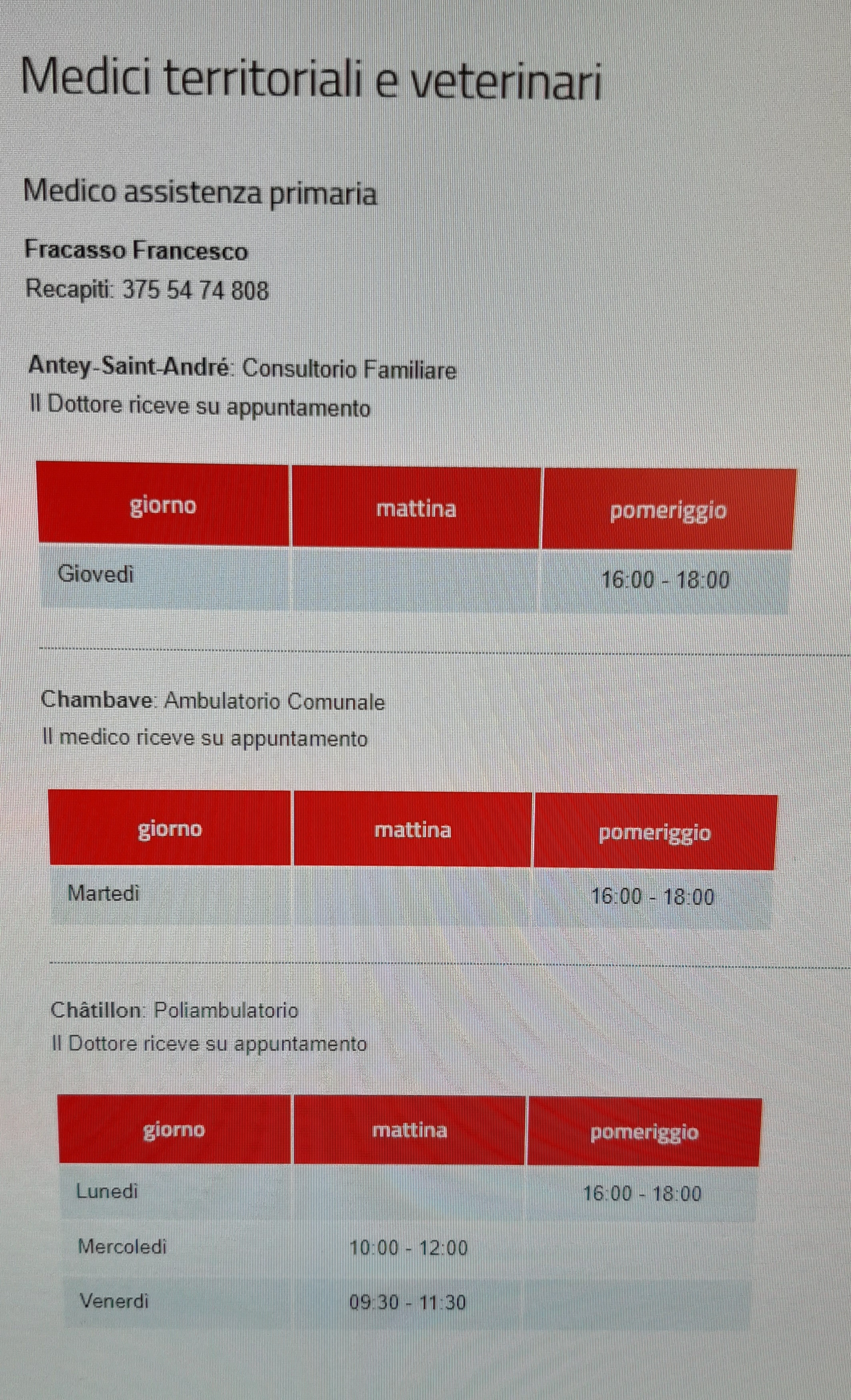 Orario dottor FRACASSO Francesco